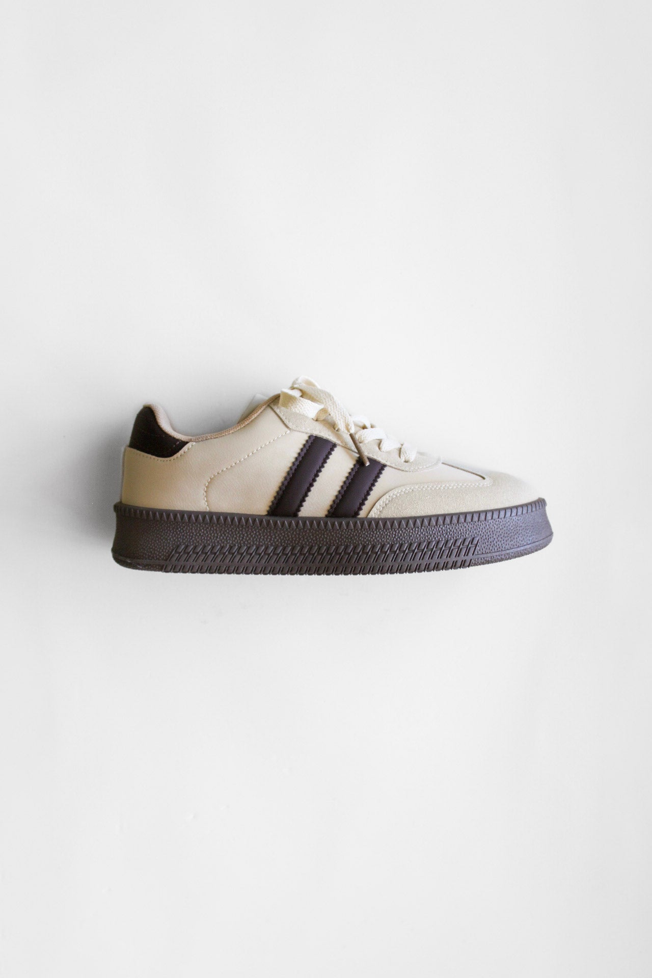 Confeccionadas en gamuza ecológica y detalles café, ofrecen un look versátil que se adapta tanto a lo casual como a lo urbano. Su suela elevada y texturizada brinda soporte y comodidad en cada paso.