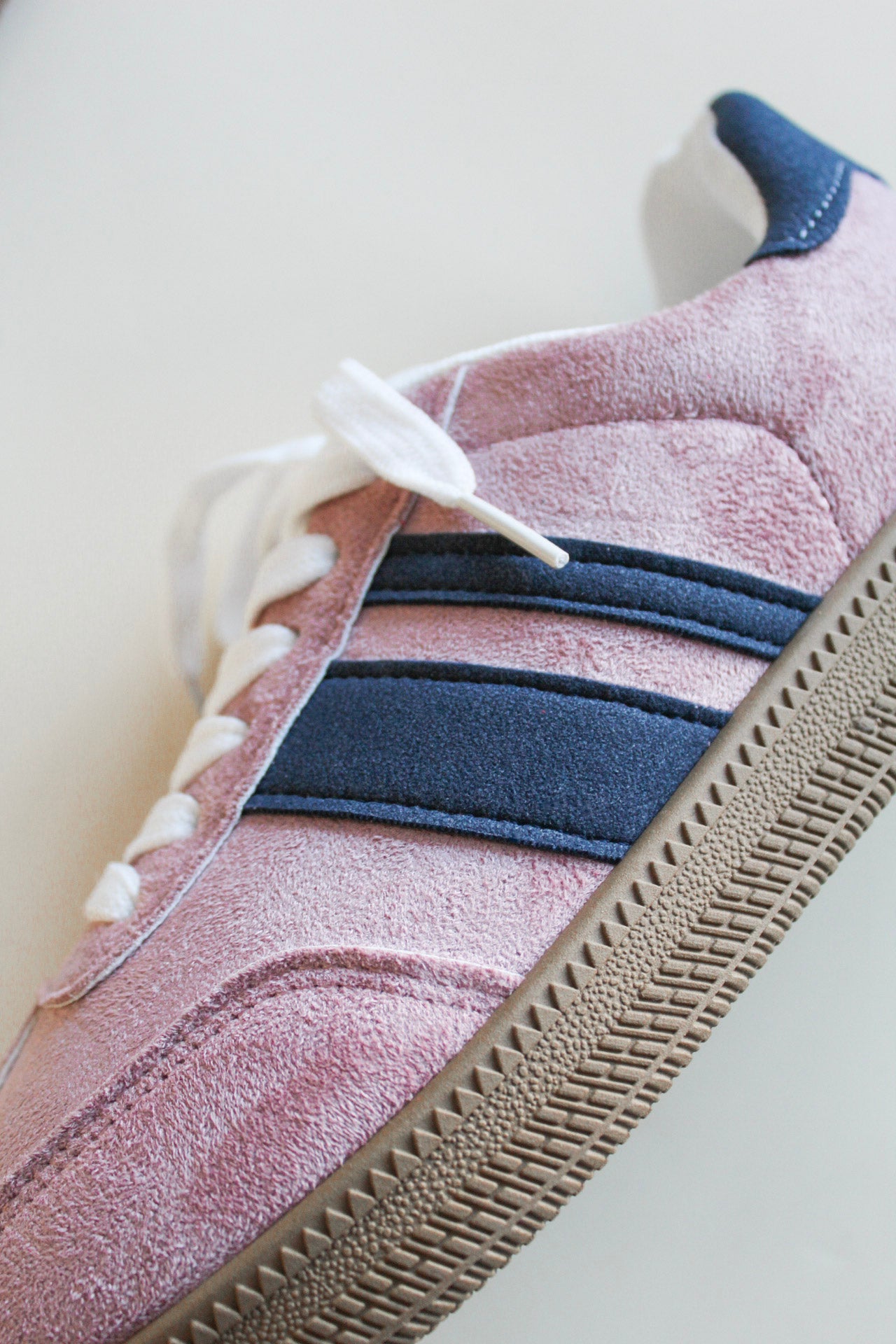 Materiales: Gamuza rosa con detalles en gamuza azul marino.