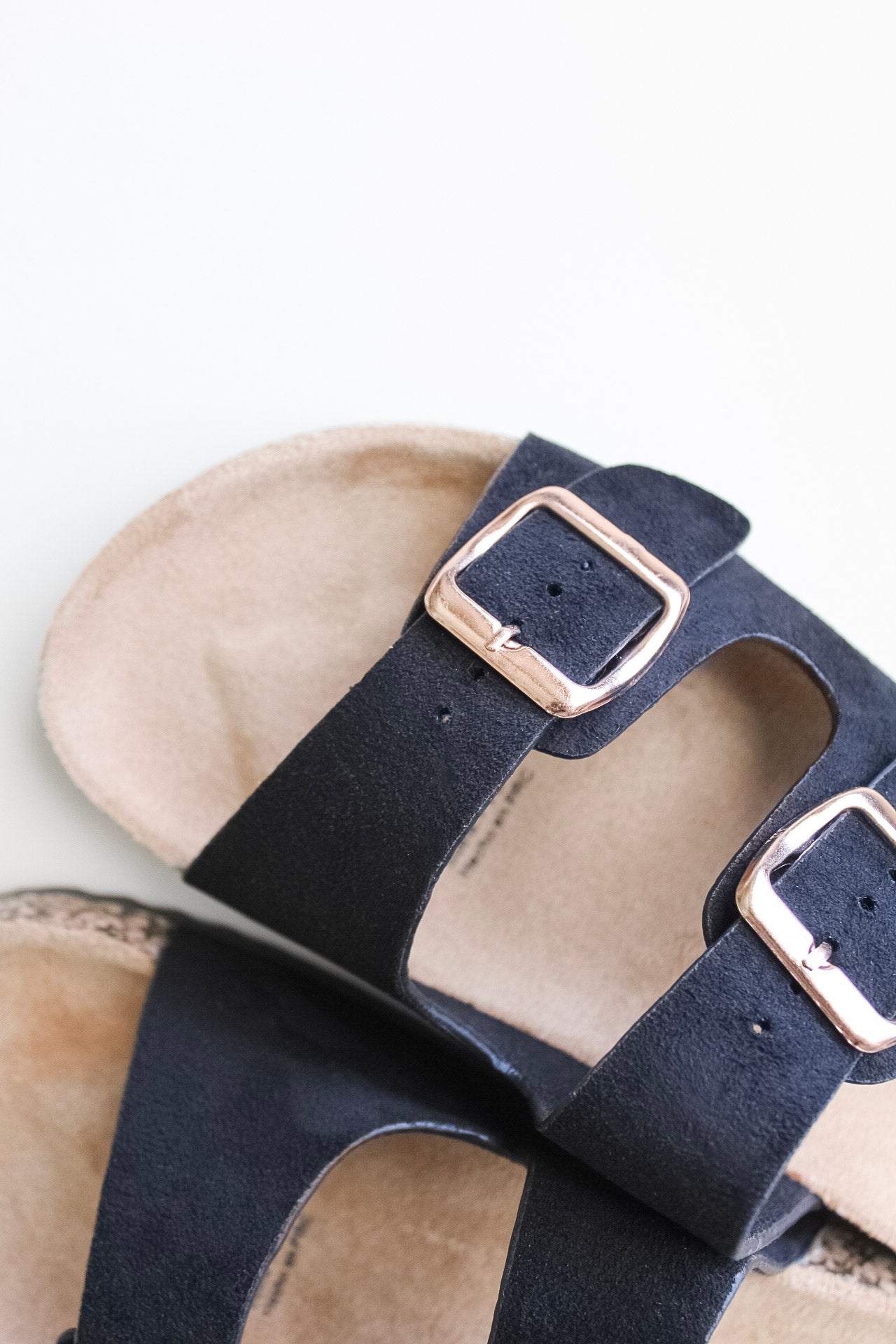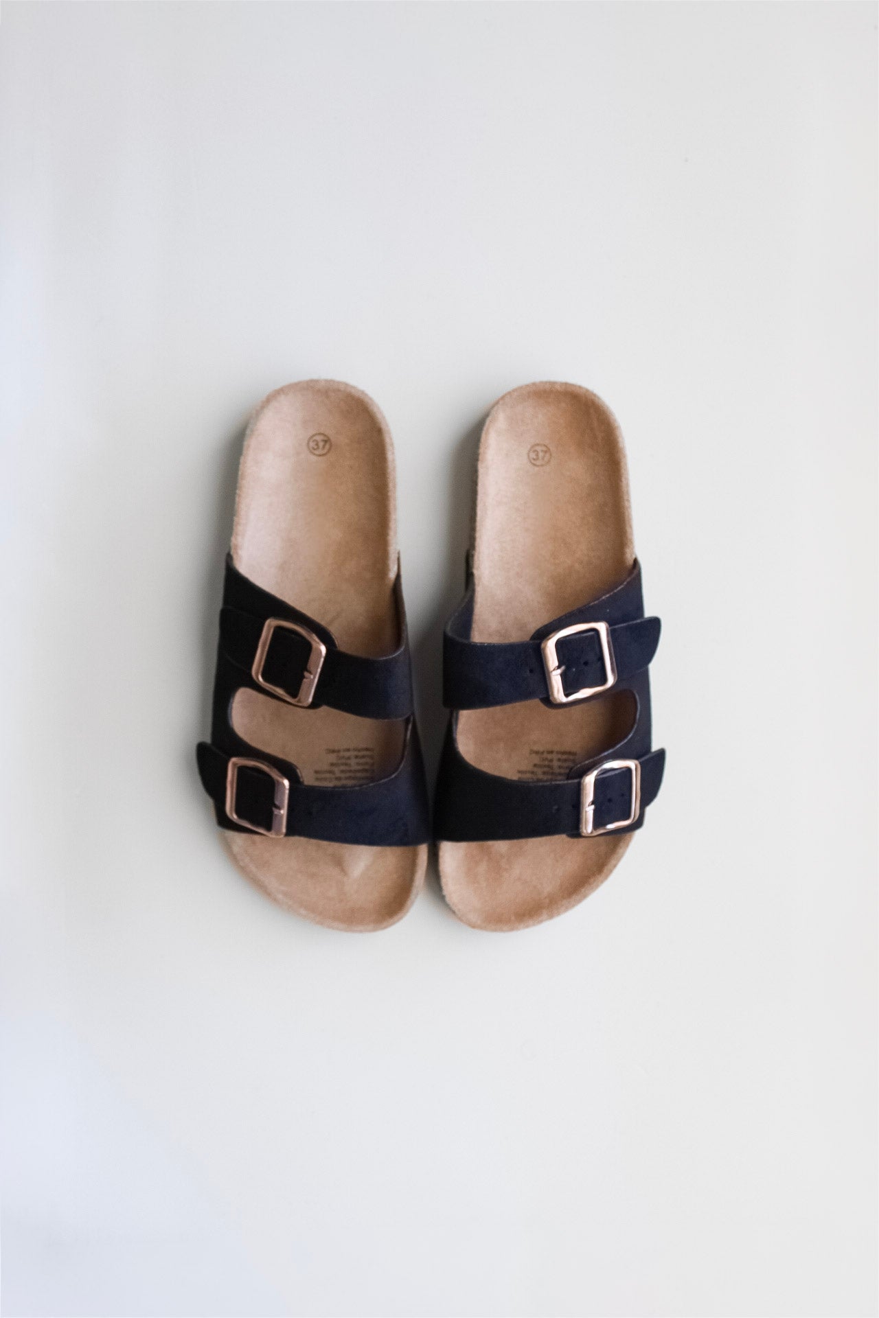 Fabricadas con materiales sostenibles, su acabado en gamuza ecológica y las dos correas ajustables con hebillas metálicas color oro rosa, aportan estilo y comodidad.