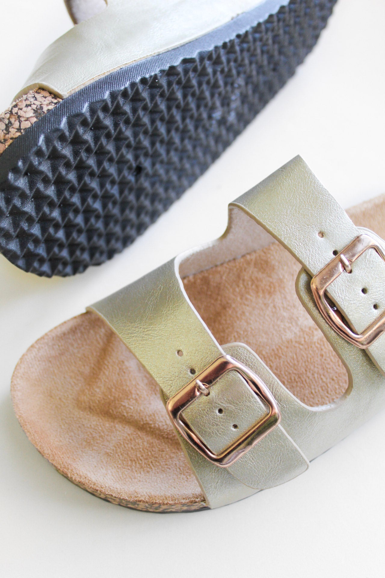Fabricadas con materiales sostenibles, su acabado en gamuza ecológica y las dos correas ajustables con hebillas metálicas color oro rosa, aportan estilo y comodidad.