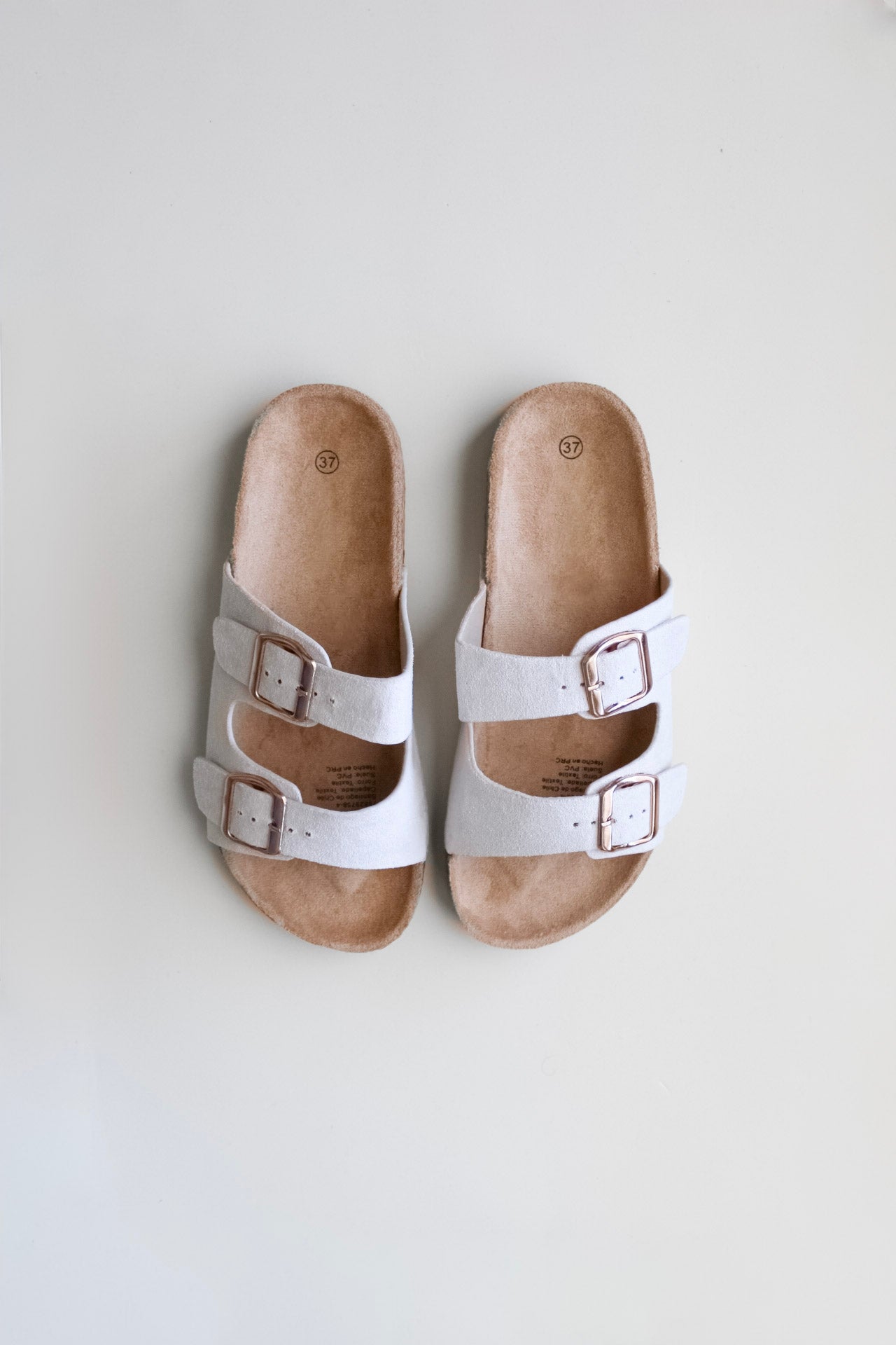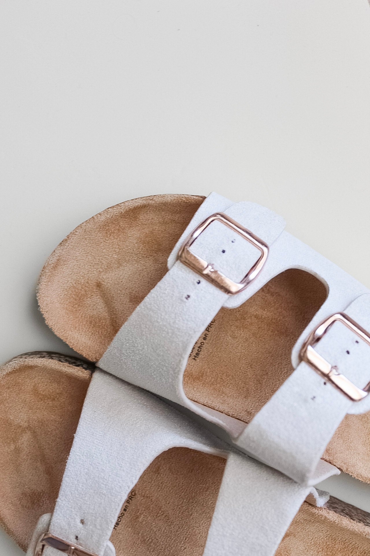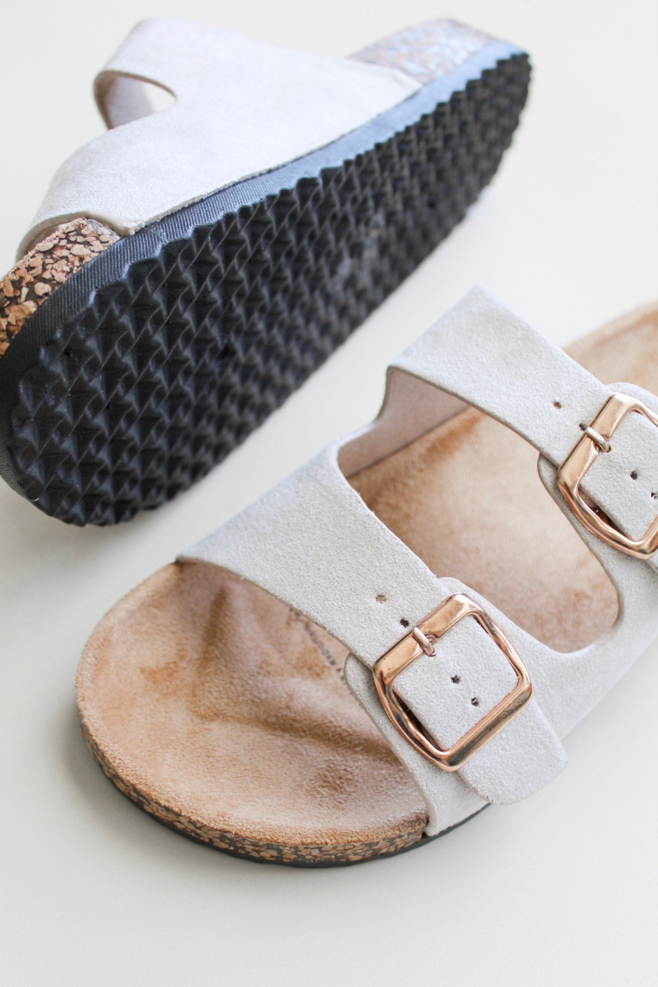 Fabricadas con materiales sostenibles, su acabado en gamuza ecológica y las dos correas ajustables con hebillas metálicas color oro rosa, aportan estilo y comodidad.